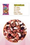 Çiğ Karışık Kuruyemiş: Çekirdeksiz Kuru Üzüm(%20), Çiğ Badem İçi(%20), Çiğ Kaju Fısıtığı(%20), Çiğ Fındık İçi(%20), Turna Yemişi(%20) (Elma Suyu Konsantresi,Bitkisel Yağ(Ayçiçek))